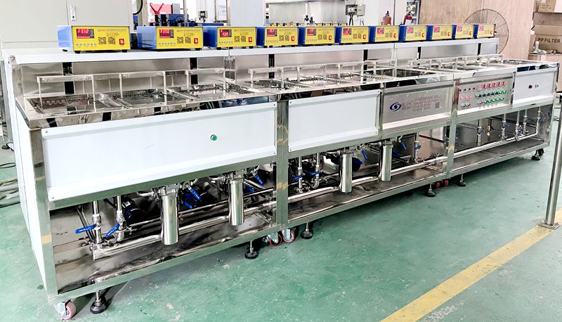 VGT-1109FS 激光頭超聲波清洗機VGT-1109FS 激光頭超聲波清洗機,設備共有 11 個功能槽,配置有循環過濾系統、自動恒溫系統、拋動系統、超聲波清洗系統、溢流系統等。